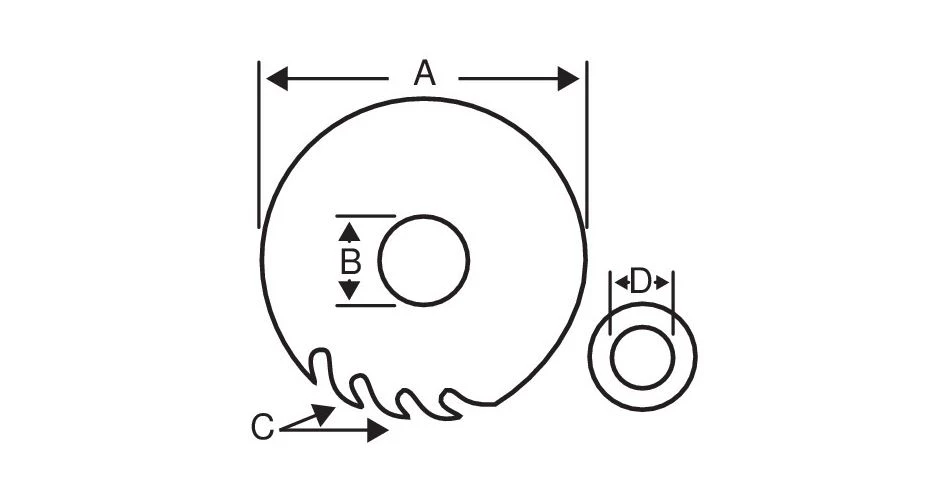 - Des bagues de rĂ©duction (mesure D) sont disponibles pour certaines lames afin de rĂ©duire le trou de l’axe, si nĂ©cessaire.