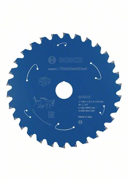 Lame de scie circulaire en carbure Bosch Acier inoxydable Expert pour scies sans fil 136 x 20 x T30 2608644530