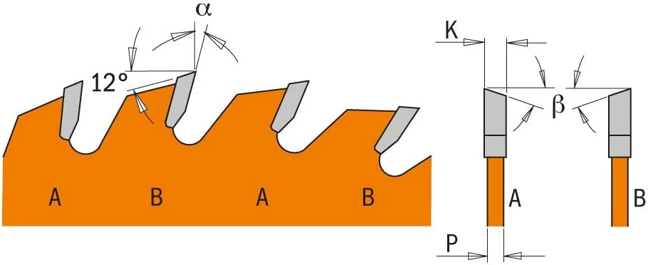 - B (forme de la dent) : 10° ATB + 8° Angle d’inclinaison