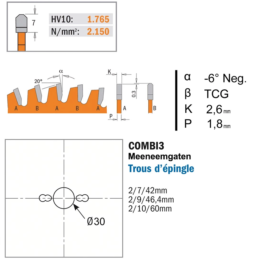 CMT 276.250.80M Lame ultra fine pour métaux non ferreux et composite 250 x 30 x 80D