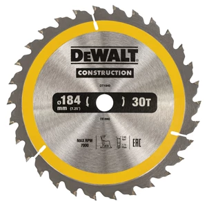 Lame de scie circulaire Dewalt DT1940-QZ 184 x 16 mm 30T ATB 10°.