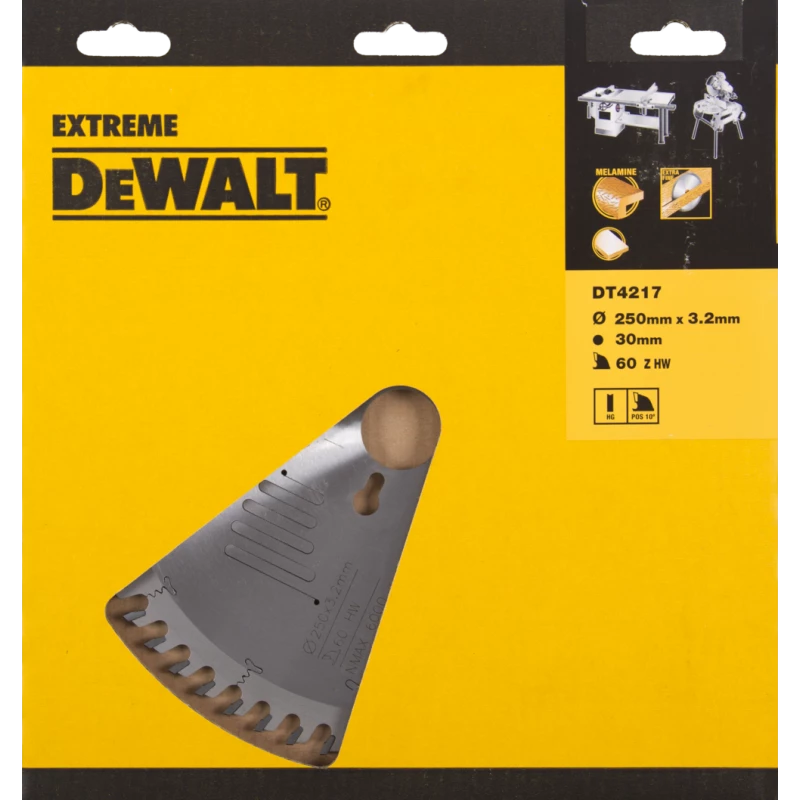 Lame de scie HM DeWalt 250 x 30 x 60T à dents creuses, Positive 10° Mélamine