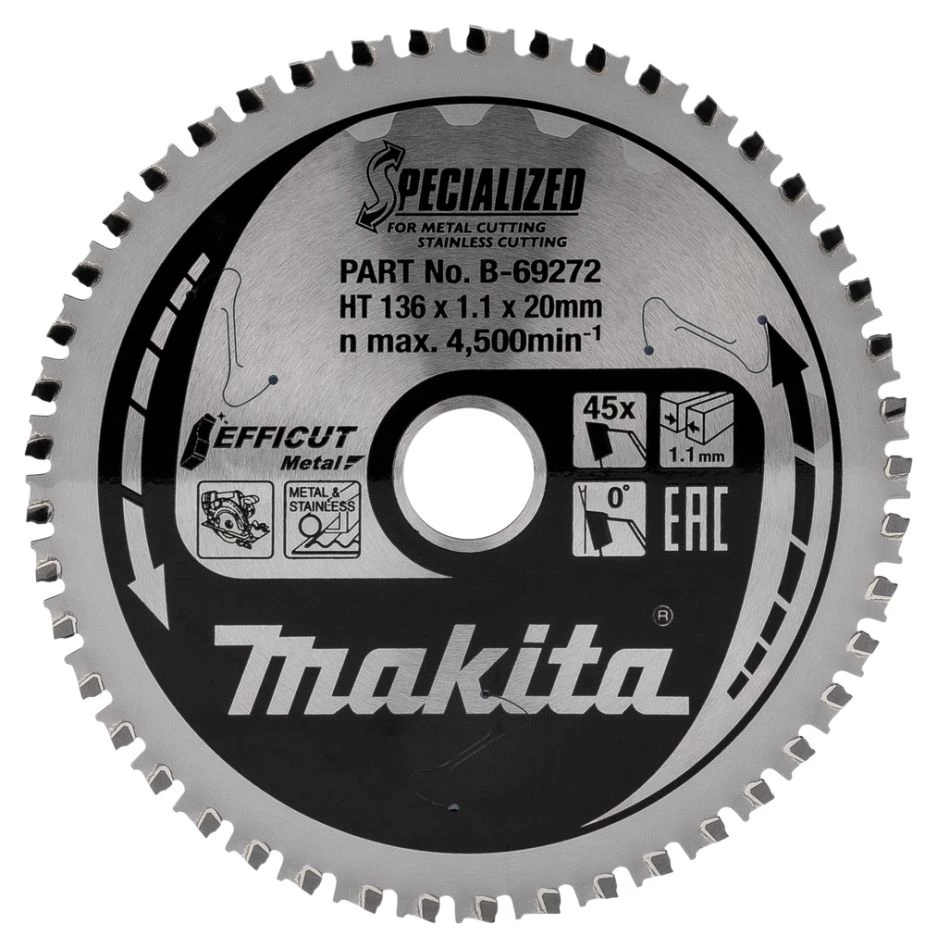 Makita B-69272 Lame de scie circulaire pour acier inoxydable Efficut 136 x 20 x 1,1 45T