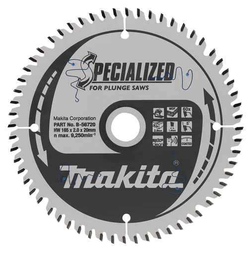 Makita B-56720 Lame de scie HM spécialisée 165 x 20 x 60T épaisseur 1.40mm